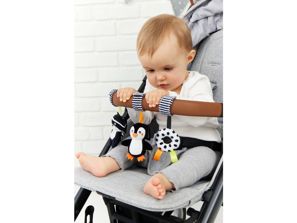 - A kényelmes tépőzáras rögzítés (kellemes tapintású és könnyen rögzíthető) lehetővé teszi, hogy a medált bárhová rögzítse, például a babakocsira, a kiságyra, a hintára vagy az autósülésre.
