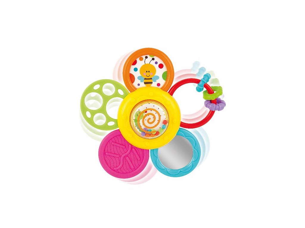 Ez a játék számos elemet tartalmaz: csörgő, csipogó, biztonsági tükör és nyikorgó. Baby can százszorszép forgassa el a a kisujjaid gyakorlása által. Támogatja a baba érzékszerveinek fejlődését. A százszorszép öt színes szirmának mindegyike más-más funkciót tölt be. Az én tapadókorong ami megkönnyíti a játék rögzítését bármilyen sima és lapos felületre.