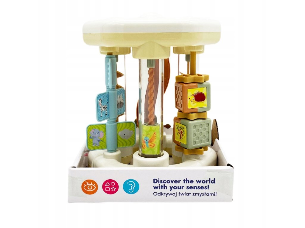 Ideális játék kisgyermekek számára 6 hónapos kortól, amely fejlesztő és lebilincselő szórakozást nyújt.