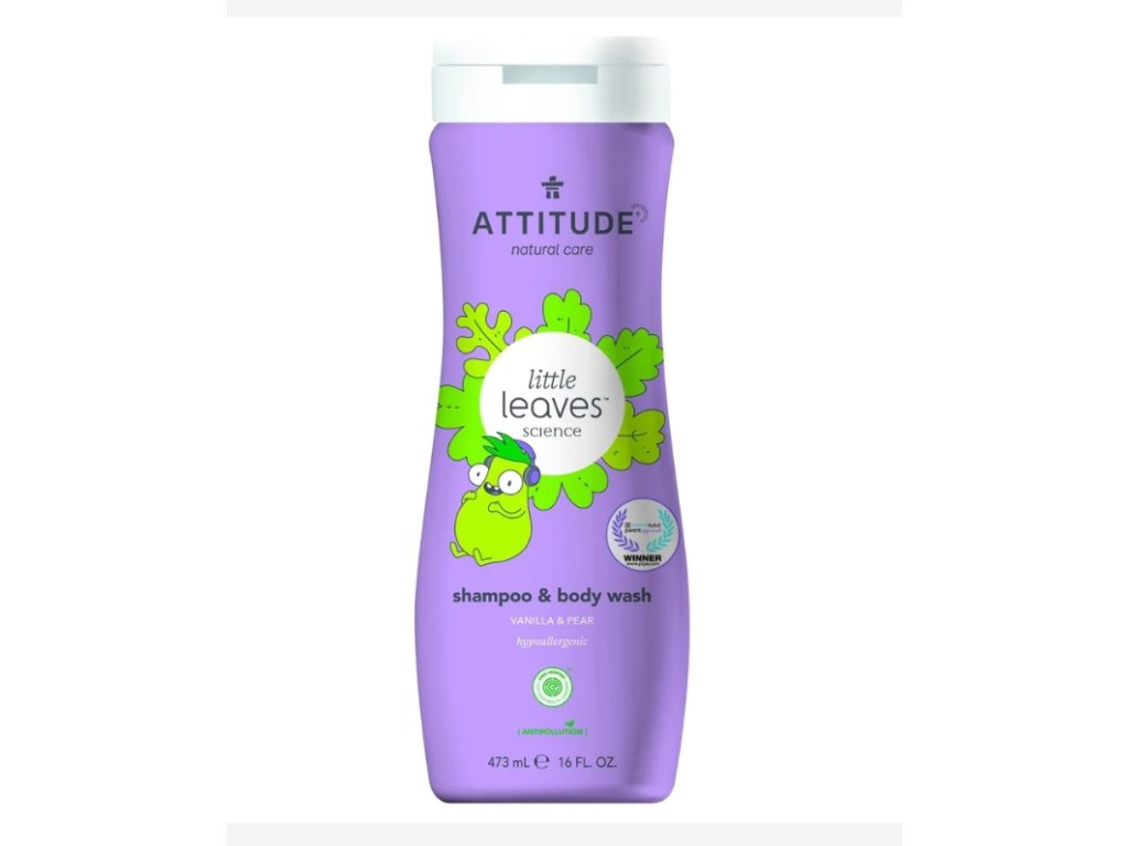 Baba testápoló és sampon (2 az 1-ben) ATTITUDE Kis levelek vanília és körte illattal 473 ml