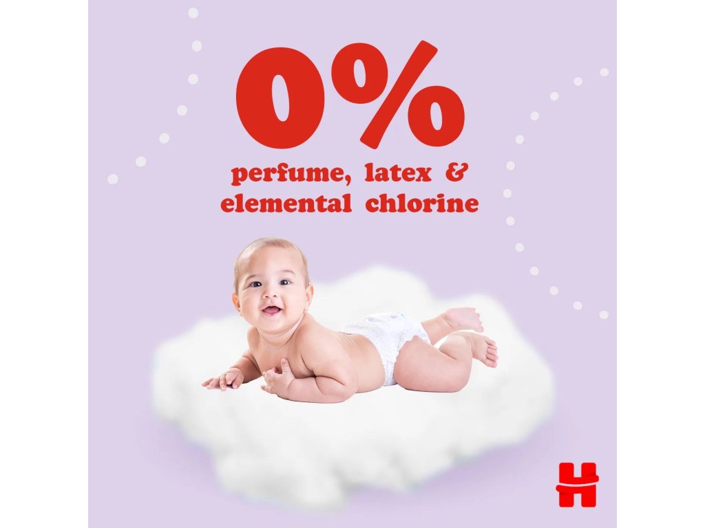 A légáteresztő anyagok lehetővé teszik a levegő keringését, és segítenek szárazon tartani a baba bőrét. A puha párnák másodpercek alatt felszívják a folyadékot. A pelenkák bőrgyógyászatilag teszteltek, és nem tartalmaznak illatanyagokat, klórt vagy latexet.