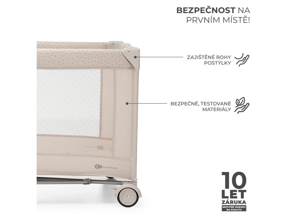 - Biztonságos anyag - A JOY 2 egy biztonságos kiságy, amely tesztelt, tapintásra kellemes anyagokból készült. Ezenkívül a kiságy sarkai védettek. A huzat pillanatok alatt tisztítható ruhával - nagy előnye az anyag rövid száradási ideje.