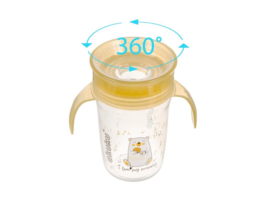 Akuku Kiömlésmentes gyermekbögre 360° 240 ml - sárga
