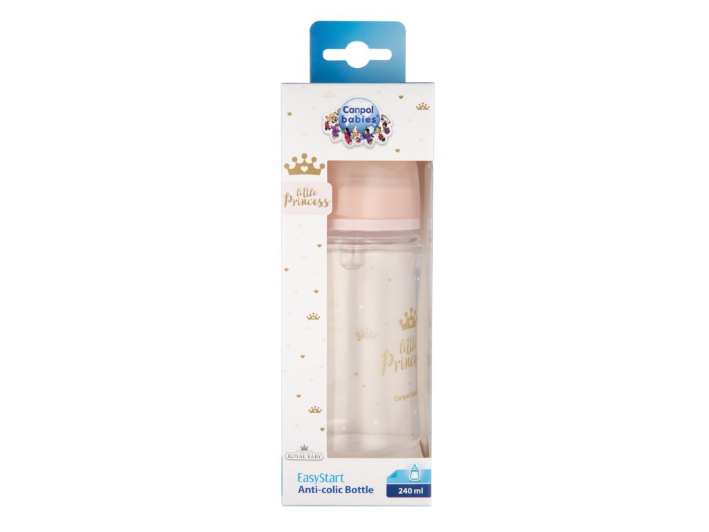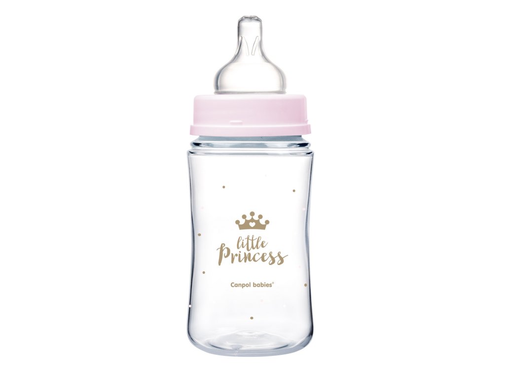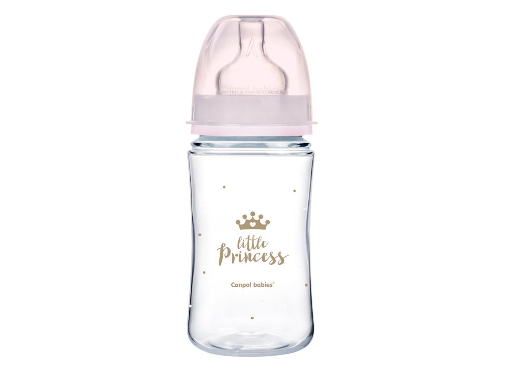 Canpol babies Széles szájú antikolikus palack ROYAL BABY 240ml - rózsaszín