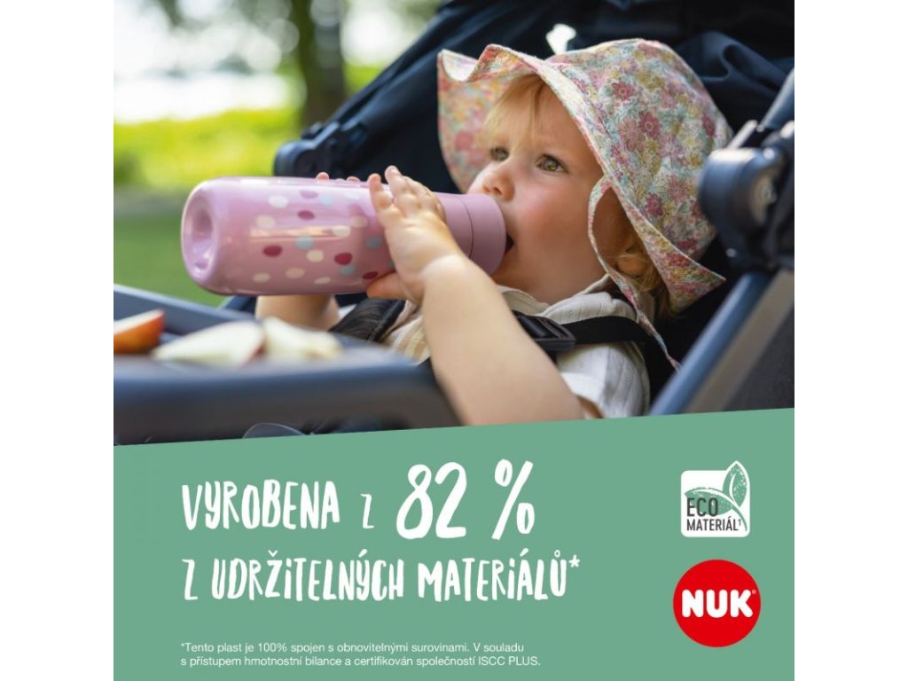 Kellemes, ha a cumisüveget nemcsak a gyerekek, hanem a szülők is szeretik. Az új NUK Mini-Me Flip cumisüveg 12 hónapos kortól alkalmas csecsemők számára. Gyerekeknek is alkalmas - modern és minimalista módon. Praktikus és stílusos egyszerre. A törésálló műanyag 82%-ban fenntartható anyagokból készül*. Az innovatív 2in1 itatónak köszönhetően a gyerekek választhatnak, hogy szívószálból isznak-e vagy sem. A harapásálló anyag mindenesetre könnyen ellenáll a kis fogaknak. Egyértelmű elkötelezettség a fenntarthatóság és a minőség iránt.