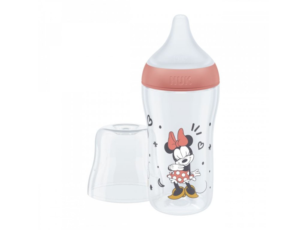 NUK Perfect Match Disney Mickey egér cumisüveg puha szilikonszívóval, 260 ml, 3 hónapos kortól, BPA-mentes, antikarbonikus rendszerrel, hőmérséklet-szabályozással