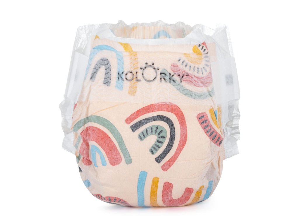 A KOLORKY eldobható ökopelenka gyengéd az érzékeny bababőrhöz és a környezethez.