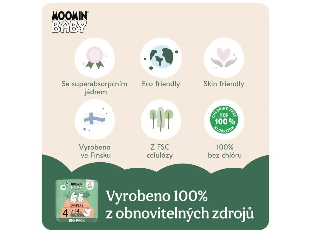 Moomin Baby 4 Maxi 7-14 kg (63 db), öko pelenka