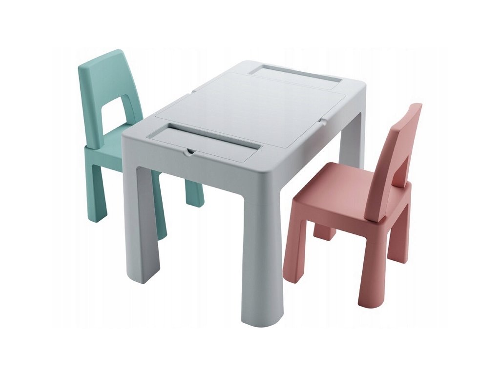 TEGGI Gyermek asztal és szék szett 1+2 - szürke/rózsaszín/türkiz színben