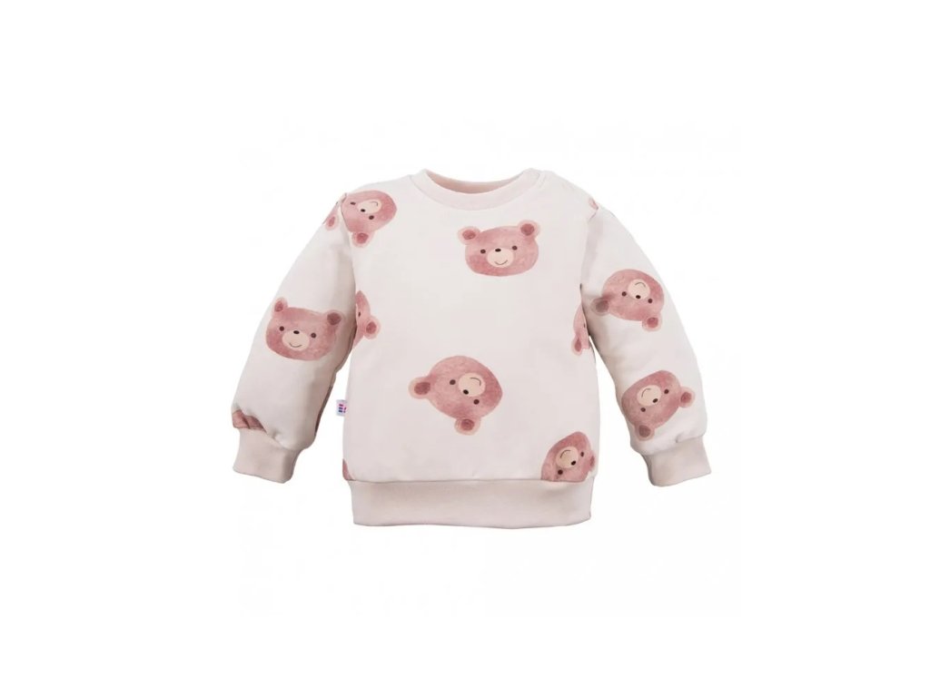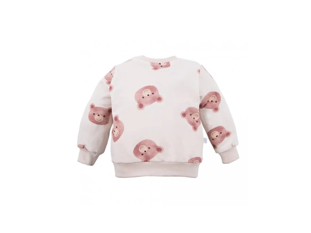 Gyermek pulóver mackóval, amelyet a fej fölött viselnek. A nyomtatás digitálisan történik - ennek a módszernek köszönhetően a nyomat nagyon puha és nem feltűnő tapintású. A gyerekpulóver alján lévő szegély megakadályozza a felemelkedést. A gyermekpulóverek remekül illenek a melegítőnadrághoz.