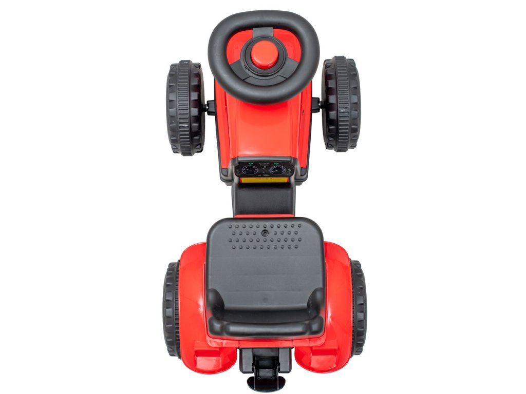 A traktor mérete 89 × 32 × 35,5 cm, könnyű, ugyanakkor stabil és akár 25 kg-os terhelést is elbír. A csúszásgátló kerekek gondoskodnak a biztonságos vezetésről, és ha a kis sofőr elindul, dudálhat is a dudával. A pótkocsiba minden szükséges belefér – a játékoktól a homokig –, és a mellékelt lapátnak és gereblyének köszönhetően máris kezdődhet a rendes munka a „mezőn”.