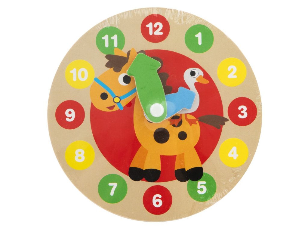 - a számlap közepén egy gyönyörű kép található egy lovacskáról és egy kacsáról