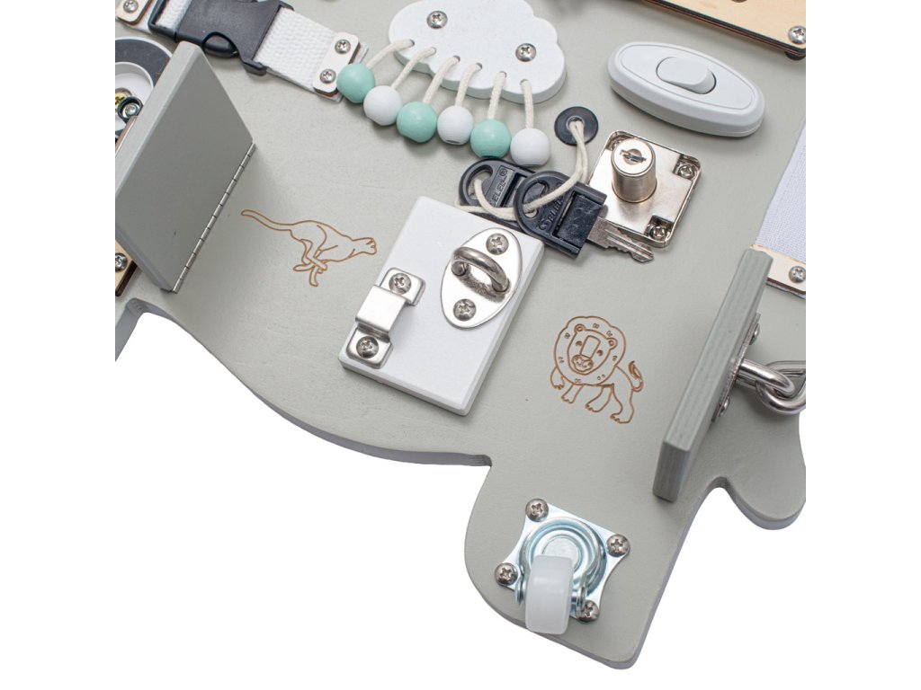 A Montessori Activity Board a Montessori pedagógia elvei szerint készült, amely támogatja a tanulást az érzékszervi érzékelés és a gyakorlati készségek révén. A gyermekek játék közben fejlesztik a finommotorikát, a türelmet, a logikus gondolkodást és a feladatok önálló megoldásának képességét.