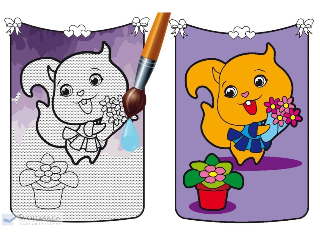 Nincs szükséged vízfestékre vagy zsírkrétára, csak egy ecsetre és sima vízre. Mártsd az ecsetet az üvegbe, fesd át a képen látható szürke pöttyöket, és varázslatosan kiszíneződik. Megtanulod, hogyan kell helyesen tartani az ecsetet és felismerni a színeket.