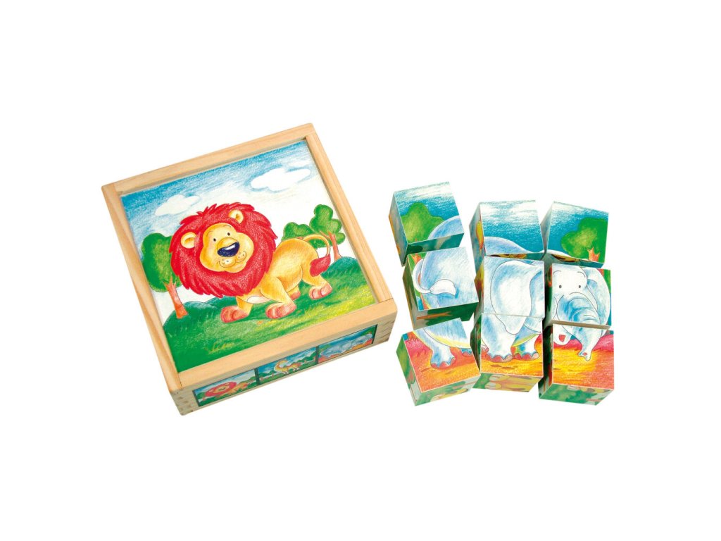 Az egyik legnépszerűbb gyermekjáték – klasszikus fából készült kockák vadállatok képeivel.
