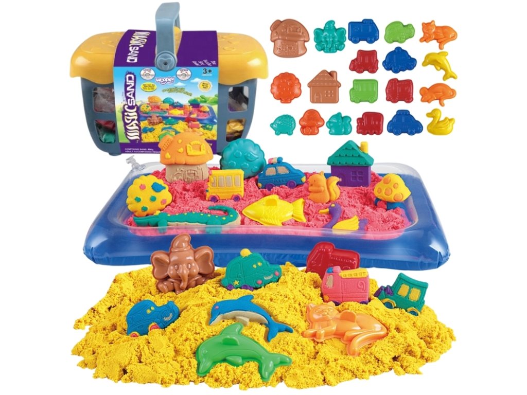 Vidd haza a tengerpart hangulatát anélkül, hogy homokkal borítanád be a lakásodat! Bemutatkozik a Varázslatos Kinetikus Homok praktikus kosárban a Woopie! -tól. A tökéletes készlet kreatív és érzékszervi játékhoz gyermekek számára. Tento a rendkívüli homok soha nem szárad ki , puha tapintású és könnyen formázható , így számtalan formát és szerkezetet hozhatsz létre. A különböző formákkal és kiegészítőkkel gyermeked fejlesztheti képzelőerejét és kézügyességét, miközben tiszta és biztonságos játékot élvez!
