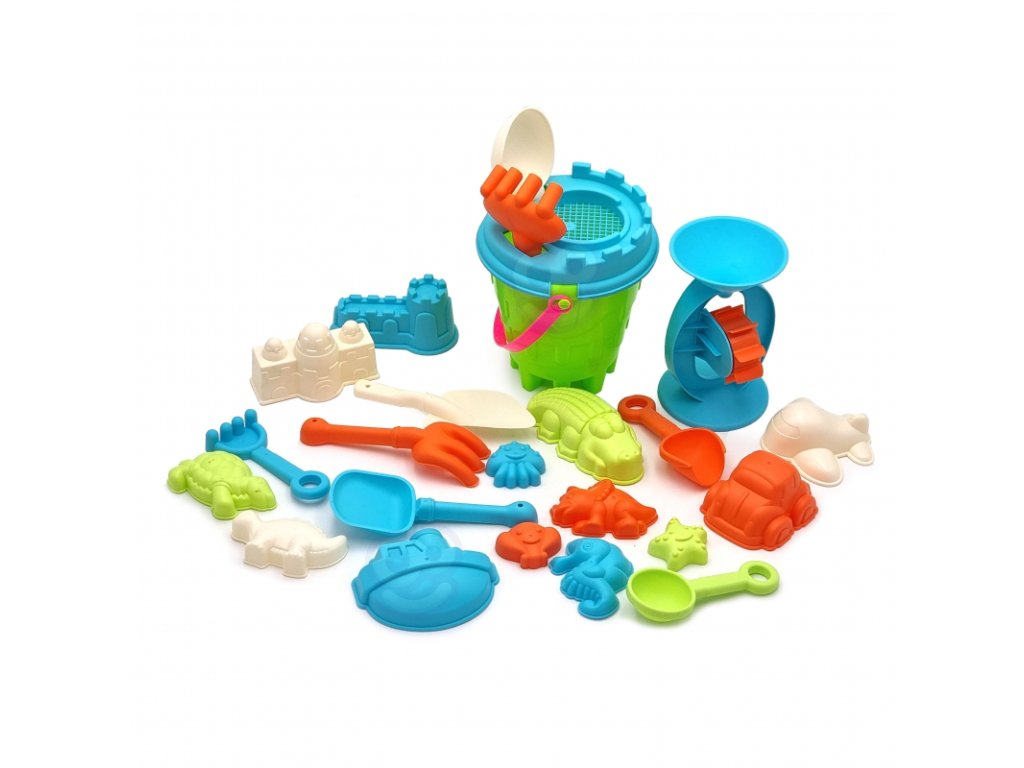 Homokos vödör készlet a márkától WOOPIE nagyszerű kiegészítője a homokozónak vagy akár a kertnek. A készlet a következőket tartalmazza 25 elemeket vödör, szita, malom, 15 forma, 4 lapát és 3 pár gereblye. A készlet gyönyörű pasztellszínű design a vödör kényelmes fogantyú. Garantáltan nagyszerű szórakozás homokozó , tovább strandon és még a kertben !