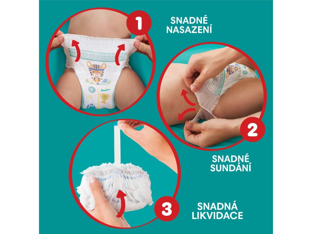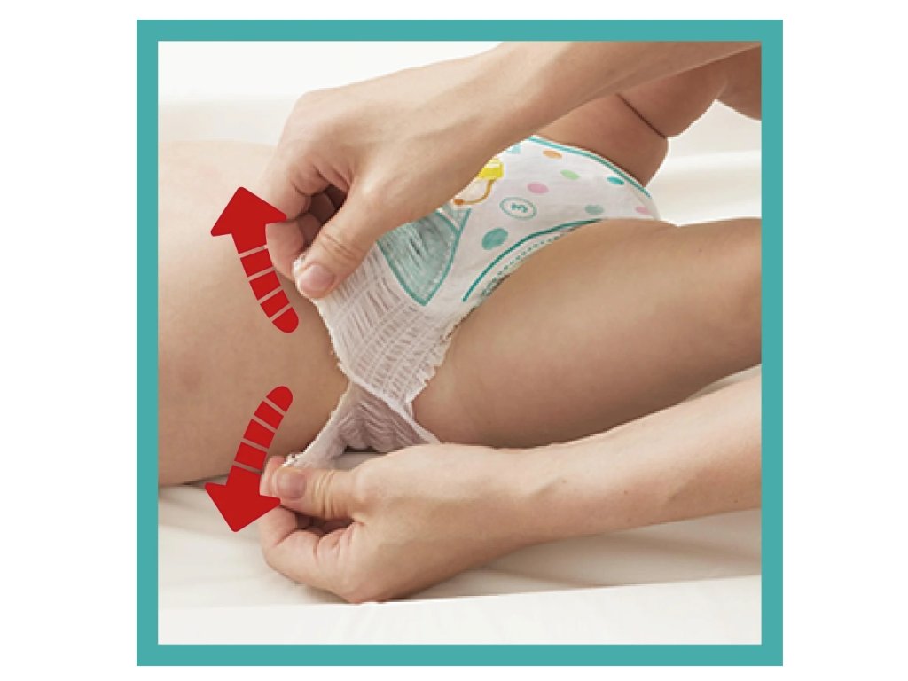 A Pampers Pants pelenkázó bugyi puha és rugalmas, így mindig a babához igazodik. Kényelmes felvenni, és az oldalukon elszakíthatóak a könnyű váltás érdekében.