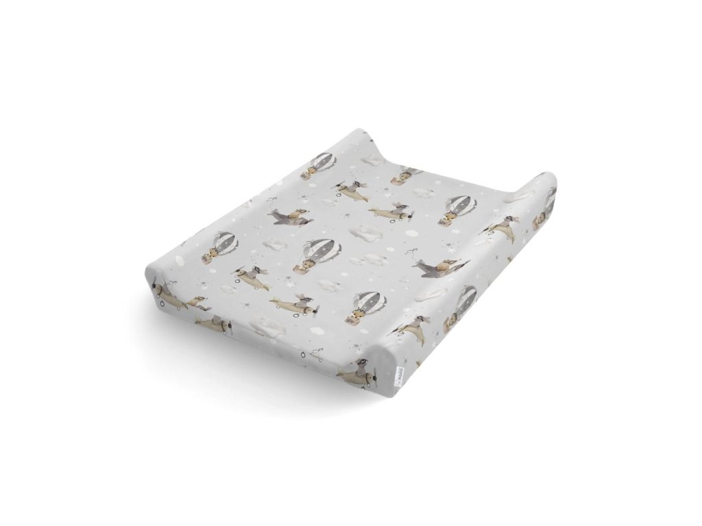 A pelenkázószőnyeg huzata kiváló minőségű pamutszövetből készült, a kollekció motívumának színes nyomtatásával.
